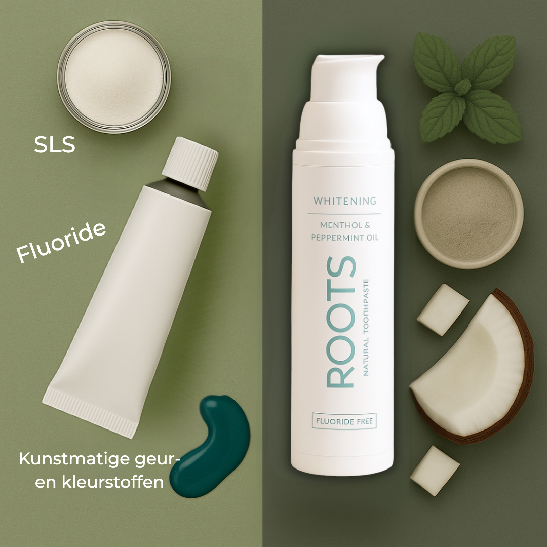 De meeste tandpasta's zitten vol goedkope chemicaliën zoals fluoride, triclosan, SLS en parabenen — stoffen die je natuurlijke mondflora ernstig verstoren en een negatief effect hebben op je algehele gezondheid.
